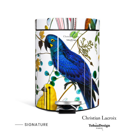 Dieser Kosmetikeimer ist aus einer exklusiven Zusammenarbeit zwischen dem renommierten Haus Christian Lacroix und TohaaDesign entstanden und bringt sanfte Energie und Licht in Ihr Zuhause. Auf weißem Grund trägt er das berühmte Motiv "Birds Sinfonia" aus dem Hause Christian Lacroix. Ein Hauch von Eleganz und Erhabenheit für eine einzigartige Deko!
