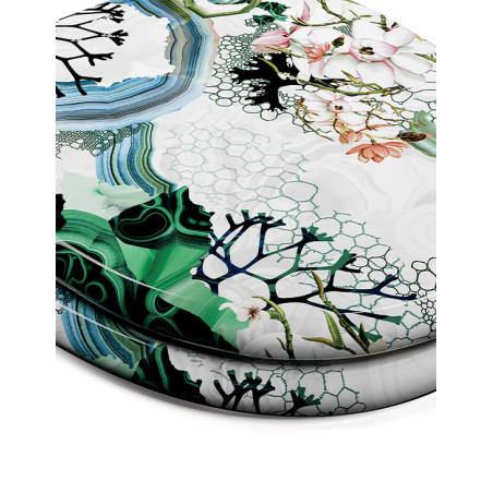 Entstanden aus der Zusammenarbeit zwischen der Maison Christian Lacroix und TohaaDesign, vereint der WC-Sitz "Algae Bloom" auf harmonische Weise kostbare Mineralien und Meeresflora. So entsteht eine neue Welt, in der Malachit schimmernde Moiré-Reflexe aufweist und Algen die feinen Muster der zartesten Spitzen nachahmen, um Ihrem Badezimmer einen Hauch von Eleganz und Raffinesse zu verleihen.