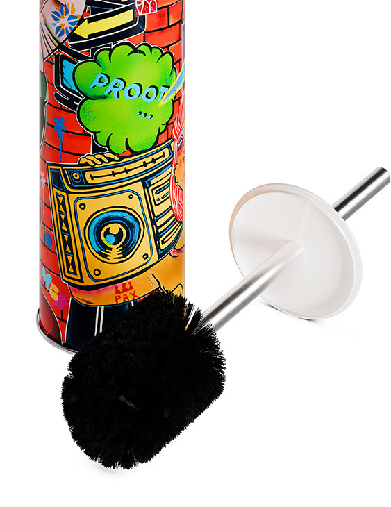 This colorful, unique bathroom brush transports us into the dynamic, pop universe of the talented Guive Khosravi. Its "Vanity Fair" design for TohaaDesign is an explosion of flamboyant hues and original graphics..
