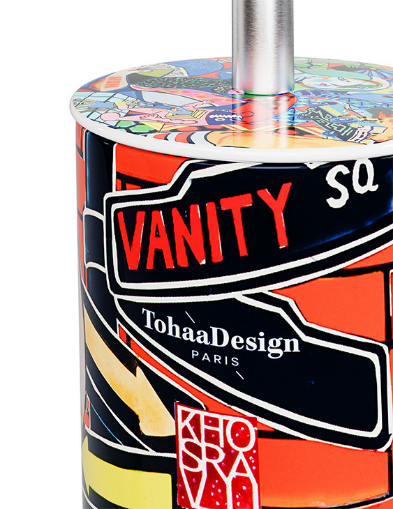 Esta escobilla de diseño original y colorista nos transporta al dinámico universo pop del genial Guive Khosravi. Su colección "Vanity Fair" para TohaaDesign es una explosión de colores llamativos y originales diseños.