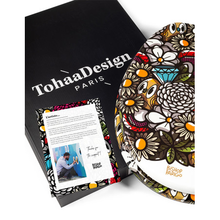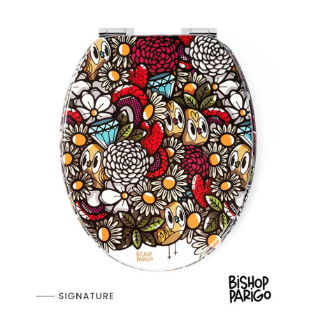 Né d’une collaboration unique entre TohaaDesign et l’artiste parisien BishopParigo, cet abattant "BirdyFlowers" se démarque par ses motifs colorés et son originalité. Un design audacieux qui n’existe nulle part ailleurs, parfait pour transformer vos toilettes en un lieu inédit. Cette création ravira les amateurs d’art.