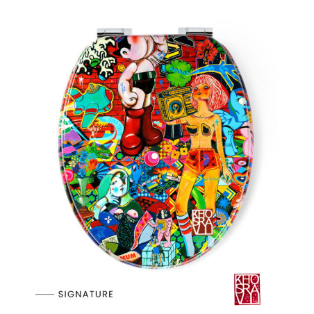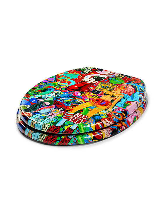 Ce modèle de lunette de toilette original haut en couleur nous transporte dans l'univers pop et dynamique du talentueux Guive Khosravi. "Vanity Fair" qu'il décline pour TohaaDesign, nous fait vivre une explosion de tonalités flamboyantes et de graphismes originaux.
