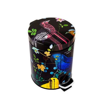 La Maison Christian Lacroix s’associe à la marque TohaaDesign pour vous proposer un modèle de poubelle de salle de bain unique. Ce dessin emblématique de la prestigieuse Maison Lacroix "Birds Sinfonia", au fond noir intense, s’anime d’une nuée d’oiseaux aux plumages chatoyants retraçant les portées musicales de leur propre chant.