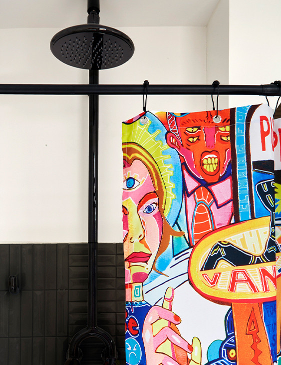 Signé par l’artiste contemporain Guive Khosravi, ce rideau de douche "Love Story" illuminera votre salle de bains. Ses couleurs chatoyantes et ses formes dynamiques lui confèrent un style unique, d’inspiration Pop-Art.