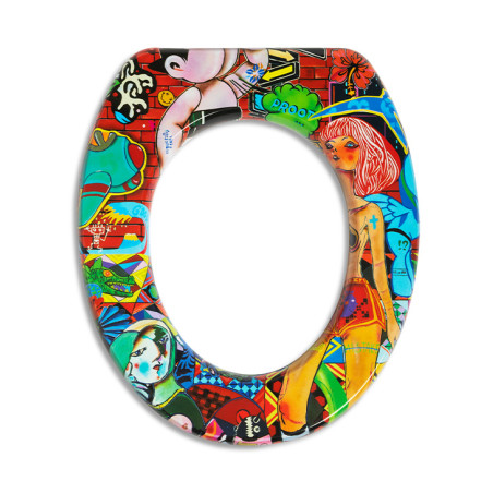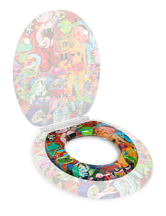Discover the Vanity Fair children's reducer designed by French artist Guive Khosravi, a must-have accessory to accompany your little ones during this important stage of going to the toilet. With its pop-art style and cartoon characters, it will immediately appeal to your child. This playful reducer is designed to be both a design object for parents and a fun experience for children.